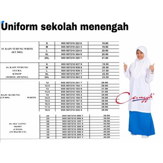 Baju Sekolah Uniform Canggih Baju Kurung Putih Size 13 13 5 Size 13 New Pgmall