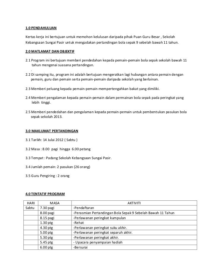 Objektif Penubuhan Program Tunas Cemerlang Bola Sepak Sukan Teras 1. Kuala terengganu politeknik kuala terengganu malaysia kertas kerja. KERTAS KERJA PERTANDINGAN SEPAK TAKRAW BAWAH 18 TAHUN SMK KEMENA 2018 Anjuran.